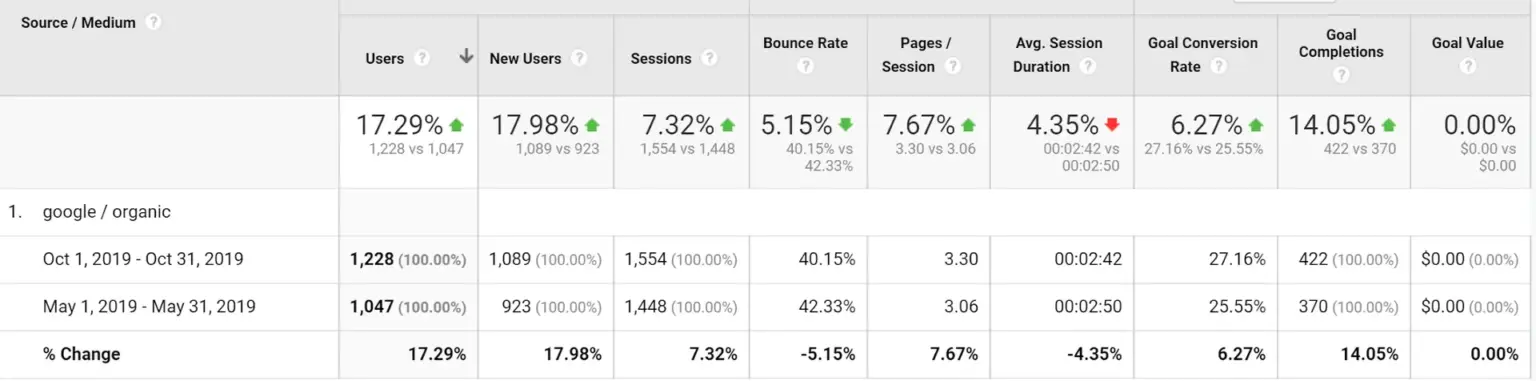 While traffic increased, there was not a huge impact on traffic and conversions despite the positive ranking movement.