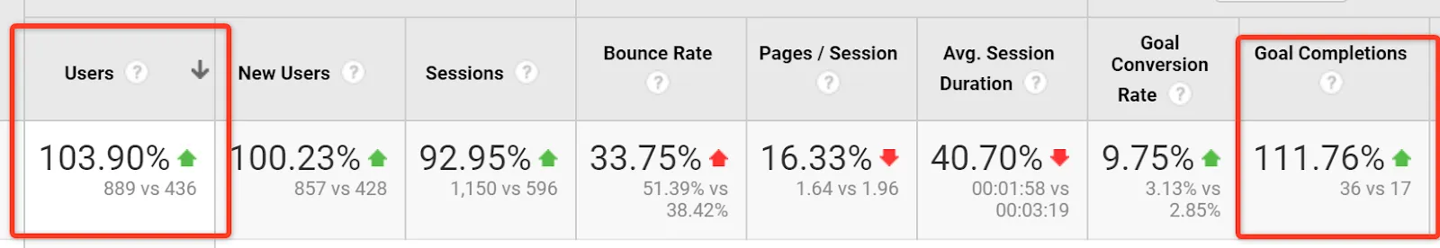 100% Increase in Traffic [436 to 889 visitors] | 111% Increase in Leads [17 to 36]