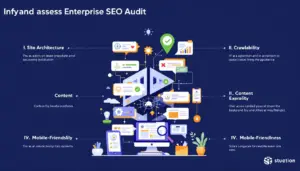 An enterprise SEO audit is a comprehensive evaluation of a large company’s online presence, specifically designed for websites with over 1,000 pages, to identify and address issues affecting organic search rankings. This assessment is crucial for optimizing visibility and ensuring effective digital marketing strategies.