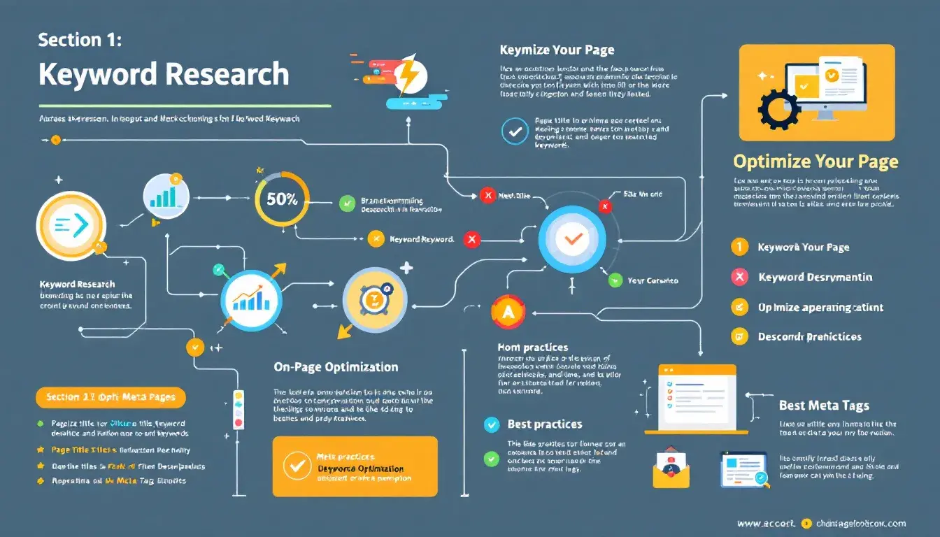 Appropriate keyword usage is crucial, including target and related keywords without keyword stuffing. The following subsections will explore optimizing title tags and meta descriptions, headings (H1-H6), and ensuring content quality.