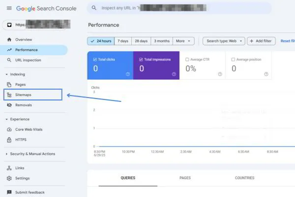 - Enter your full sitemap URL (e.g., https://yourdomain.com/sitemap.xml) and confirm.