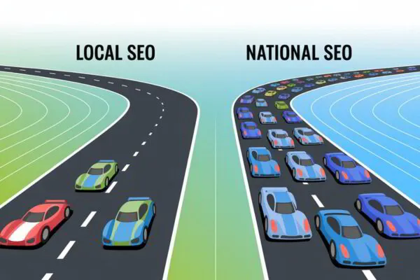 Local SEO and national SEO both aim to improve visibility in search engine results, but they operate on different playing fields. Local SEO is tailored for location-specific results, while national SEO focuses on broader, more competitive searches that go beyond geographic boundaries.