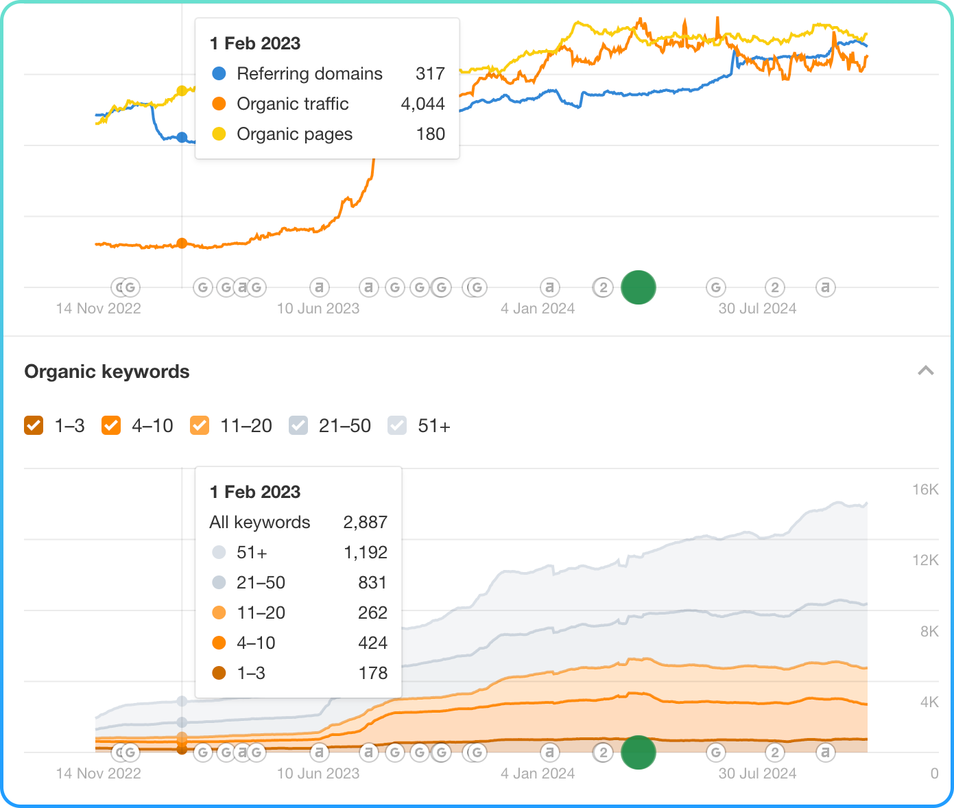 The website’s traffic metrics further highlight the effectiveness of the strategy. Total site traffic grew from 250,000 sessions in 2019 to 313,000 in 2023, a 25.2% increase. However, the real standout is the 508% surge in SEO-driven traffic, which underscores the strength of our organic growth strategy.