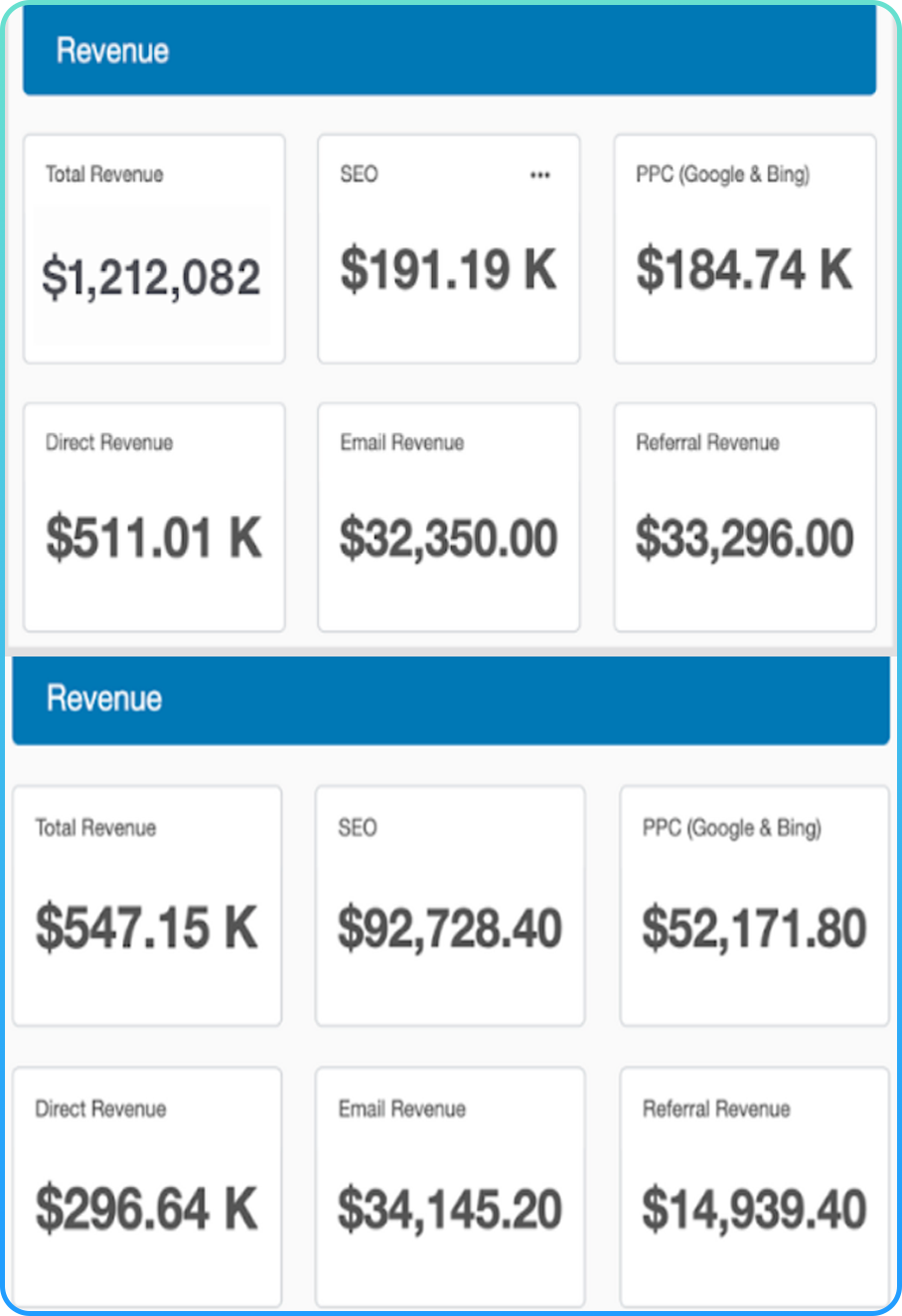 SEO revenue alone saw a staggering 106.2% rise, increasing from $92,748 annually in 2019 to an estimated $191,190 in 2023. PPC efforts complemented this growth, contributing $184,740 to the yearly revenue, compared to just $52,172 in 2019. Additionally, email marketing revenue showed a steady increase, reflecting a holistic improvement across all digital channels.
